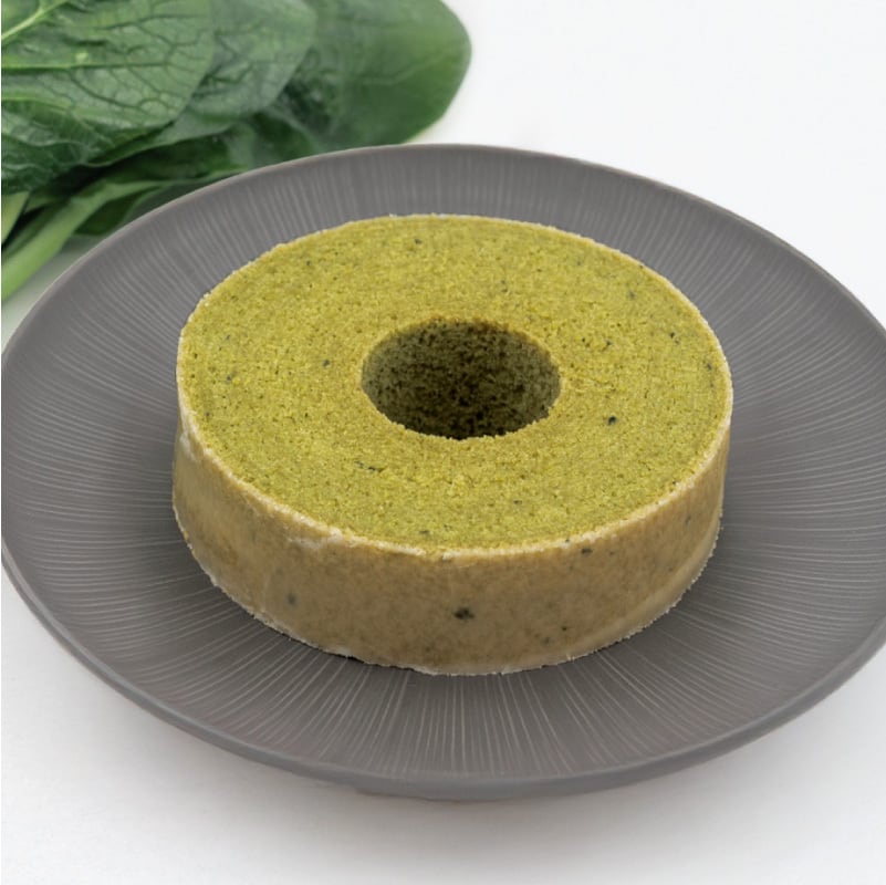 全卵(茨城県産)、砂糖、バター、食用植物油脂、生米粉(茨城県行方市産)、クリーム、小松菜パウダー、小松菜(ペースト)、バナナ(ピューレ)、アプリコット(ピューレ)、洋酒、粉あめ、寒天/増粘剤(加工澱粉、サイリウムシードガム)、膨張剤、酸化防止剤(L-アスコルビン酸)、香料(一部に卵・乳成分・バナナを含む)